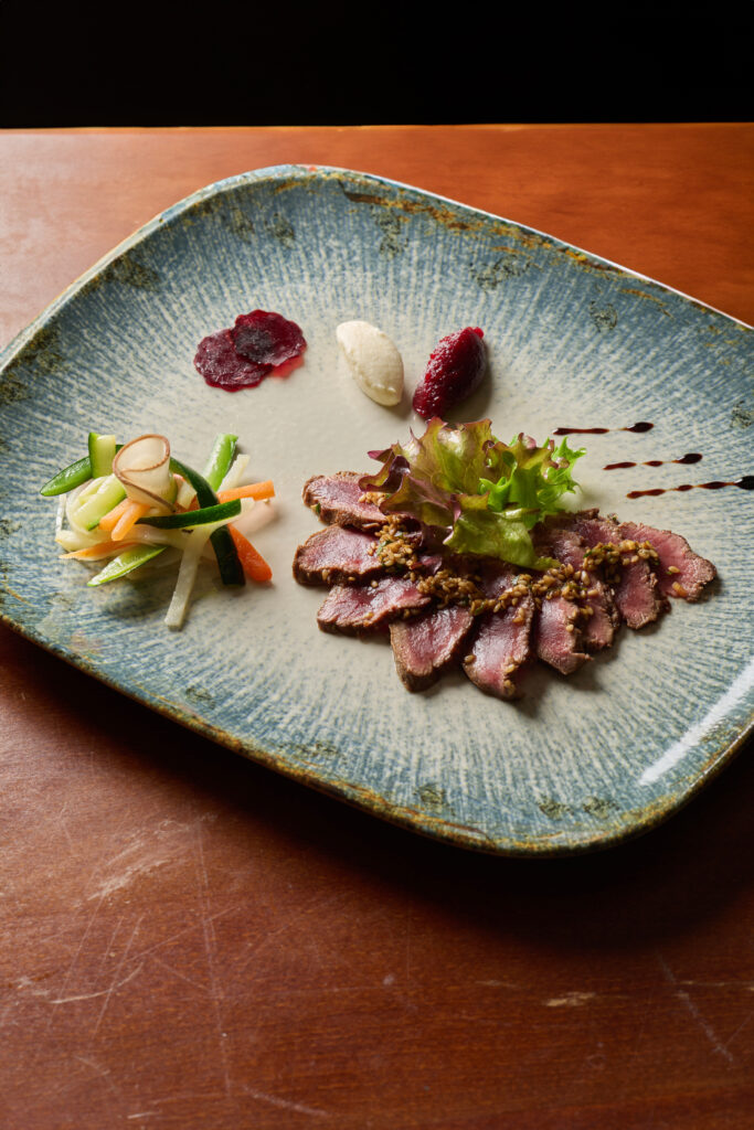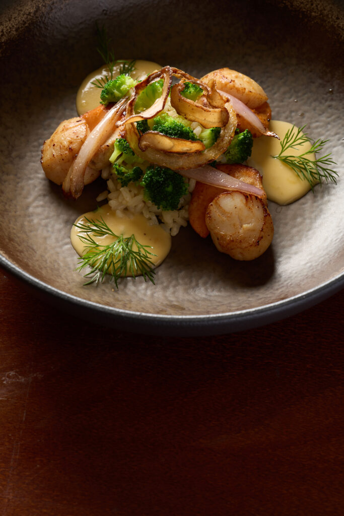 Das Walnussbrot aus St. Petersburg Jakobsmuscheln in Carpaccio, Butter Aioli, Fruchtperlen