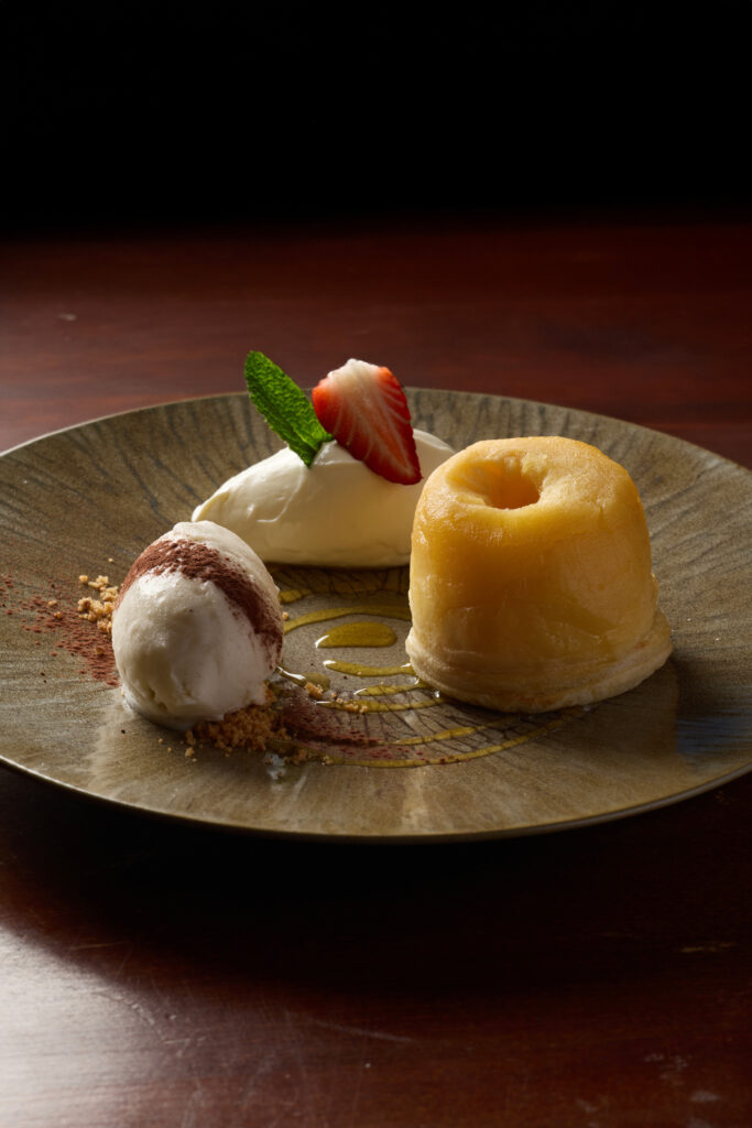 Das Cointreau-Soufflé und sein Fläschchen, Blutorangensorbet